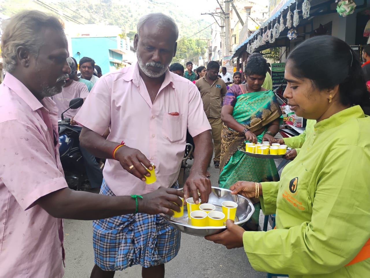 On behalf of the trust, a special Kashayam Giving service was conducted at Sri Sendraya Perumal Temple, located at Narasothipatti – Kurangu Chavadi in Salem District.