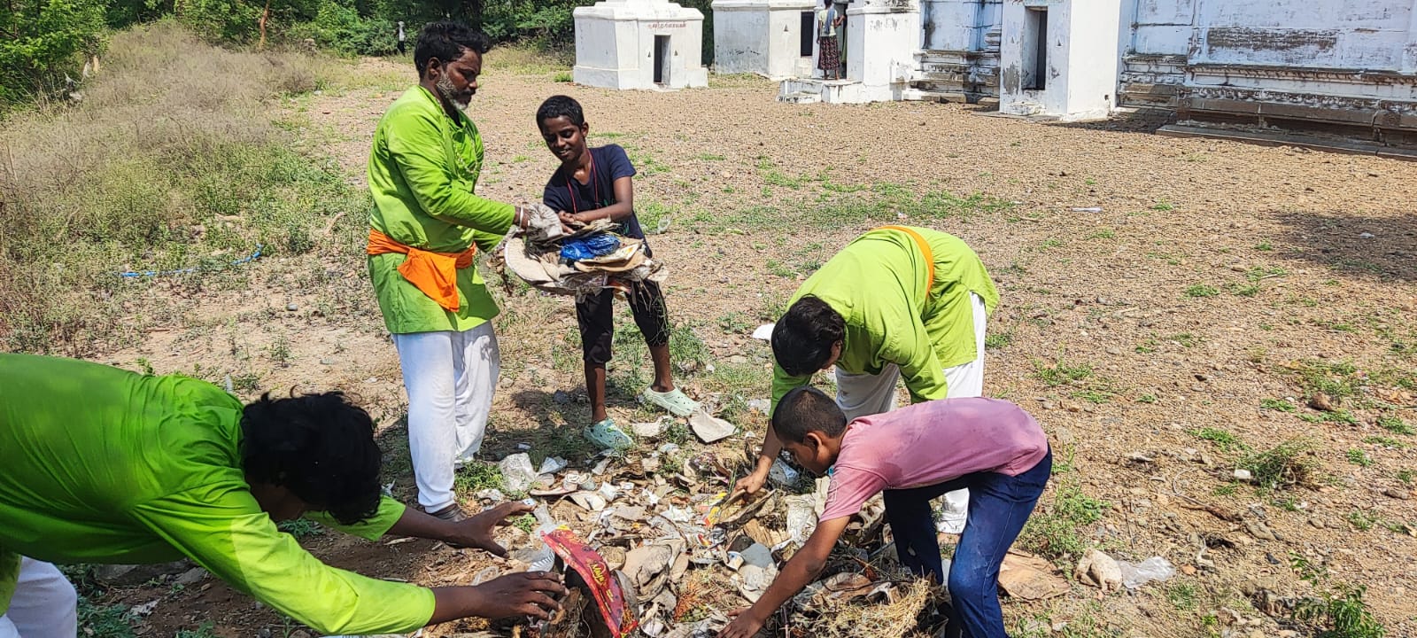 Uzhavarapani (temple cleaning service) was successfully carried out yesterday (11.04.2025) from 8 AM to 1 PM at the 900-year-old Sri Ekambareswarar Temple located at Thedavoor near Attur.